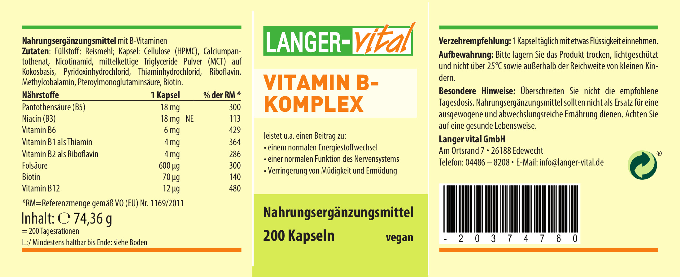 Produktinformationen "Vitamin B-Komplex, 200 Kapseln"